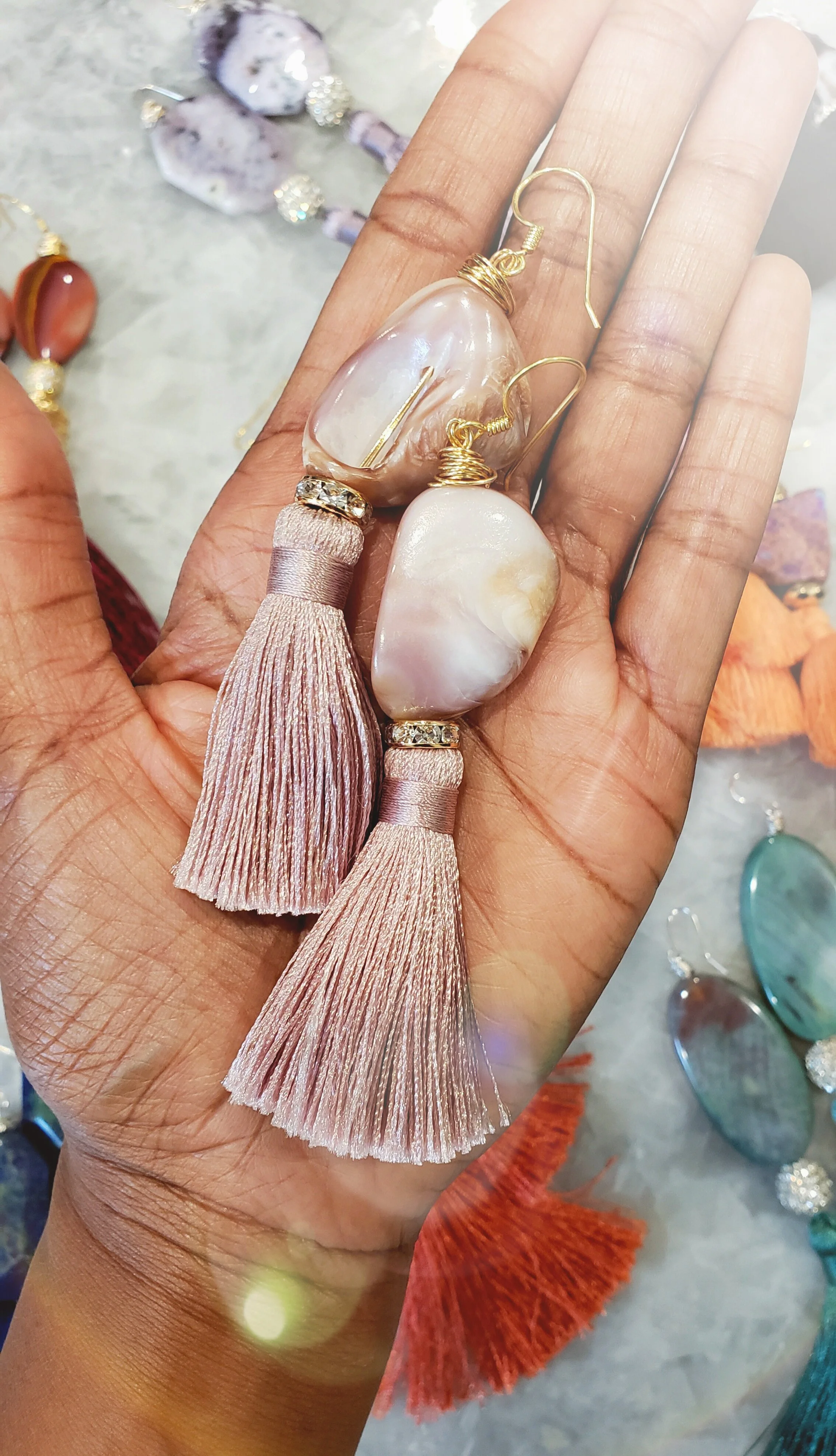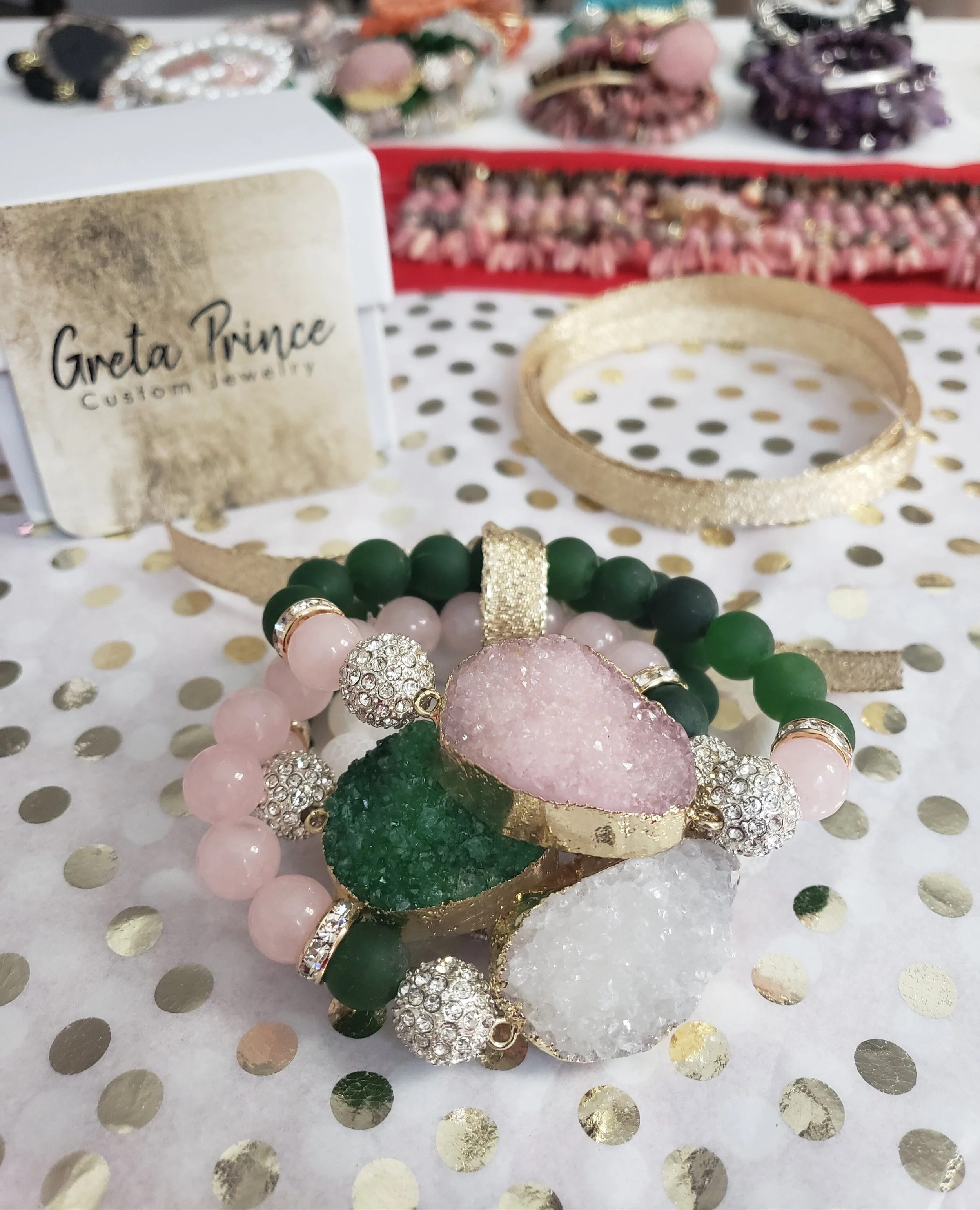 Categories: All Sets Wrist Work Ear Glam Unity In Love D9 Inspired Unisex Collection Shop All | Sets | Wrist Work | Ear Glam | Unity In Love | D9 Inspired | Unisex Collection | 1911 Que from $60.00 1913 Diva from $60.00 1906 Pharaoh from $60.00 Kenya w/ brown fan tassels $30.00 Louise $35.00 Gemma $30.00 Michelle $35.00 Leela $35.00 Mya $32.00 Mahogany $35.00 Sierra $35.00 Margeaux $35.00 Candy $30.00 Kenya $30.00 Pearls & Bling Bracelet $30.00 Diamond League Kappa Alpha Psi necklace/bracelet set $50.00 Pink & Green sea sediment bead bracelet Sale Price: $10.00 Original Price: $15.00 Sale Mahogany $35.00 Salma $30.00 Azteca Set $75.00 Sophia $30.00 Earth Soul Diva $35.00 Peach Sunset $35.00 Obsidian Rhapsody $35.00 Gilded Garnet $35.00 Shellby Sale Price: $18.00 Original Price: $30.00 Sold out Gilded Garnet Set $65.00 Beauty For Ashes II $30.00 Nellie $25.00 Sold out Limoncello $35.00 Sky's The Limit $45.00 Blushed Trio $45.00 Blushed $70.00 Beauty For Ashes $70.00 Beauty For Ashes Trio $45.00 Ethel $50.00 Ethel II $50.00 Gift Card from $25.00 $25.00 Georgia Clay $75.00 Finer $75.00 The More The Berry-er $70.00 Caramelody $75.00 Envy Me Green $70.00 Deep Blue Seize $65.00 Sunset $70.00 So Mauvelous $65.00 GA Peach $65.00 Turks and Quoise $60.00 Dainty $65.00 Pinky Up $75.00 Fortitude $65.00 Black Ice $45.00 Peace, Light, Love $60.00 Eye of the Tiger Duo $38.00 I Believe $35.00 Blue Dynasty $22.00 Orion $35.00 Zeus $20.00 Peace Be Still $22.00 Leopard $15.00 Diamond League $50.00